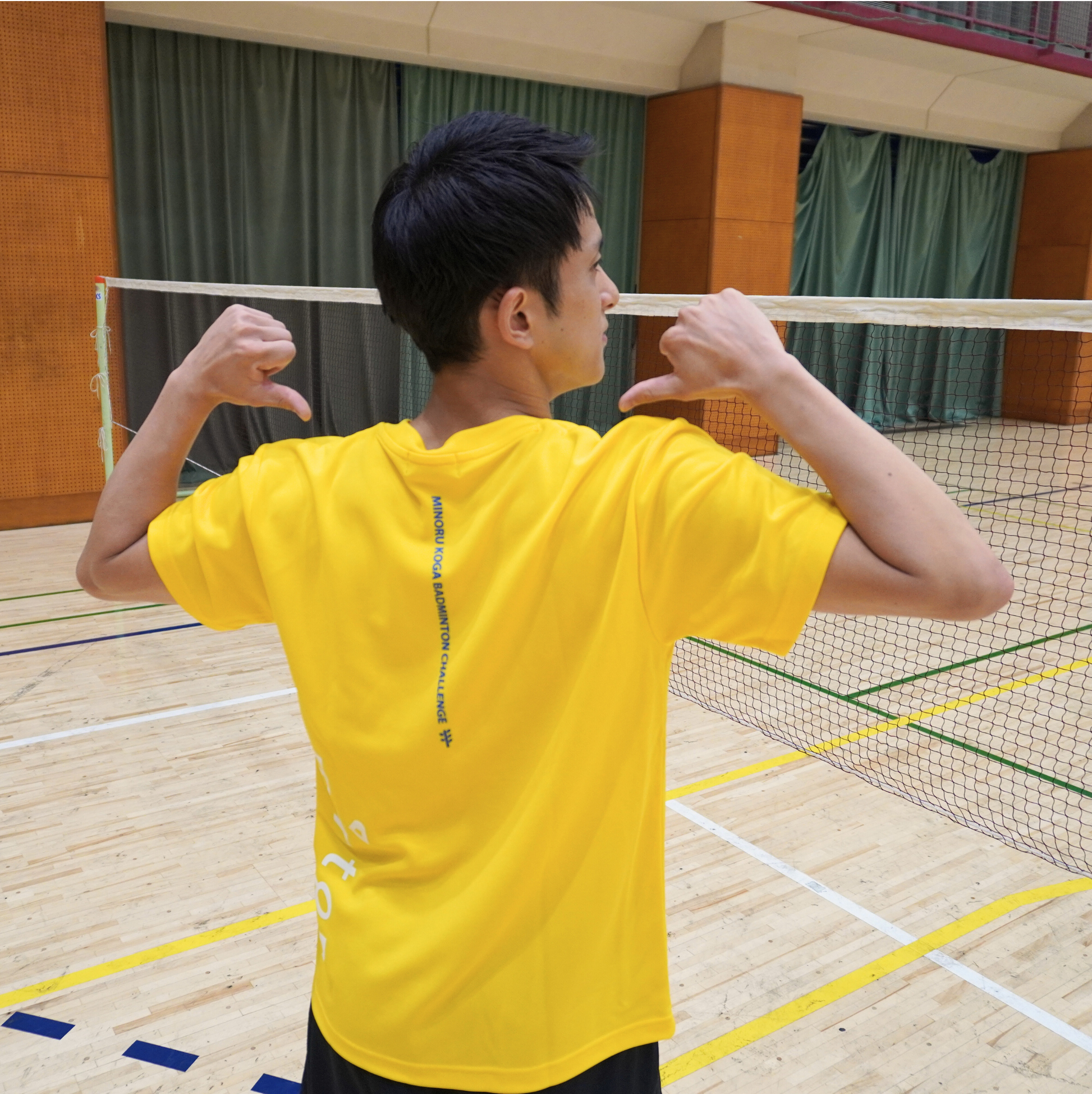 プロバドミントンプレーヤーとしてバドミントン界での新しい道を切り拓いている古賀穂(こが みのる)選手を応援するためのTシャツです。